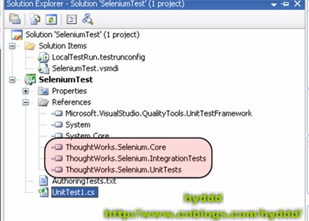 把selenium-dotnet-client-driver-1.0-beta-2目录中的ThoughtWorks.Selenium.Core.dll,ThoughtWorks.Selenium.IntegrationTests.dll,ThoughtWorks.Selenium.UnitTests.dll加入项目: