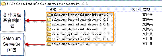 前文已介绍,由于 Selenium RC 需要 Java 作为它的开发环境。而 RFT 正好为 Selenium 提供一个较好的 Java 的开发平台。只需将 selenium-server 的 jar 包及 selenium-language-client-driver 的 jar 包导入 RFT 中即可对 Selenium 进行应用。Selenium 支持多种编程语言,它也提供了 .net,java,perl,php,python,ruby 等编程语言的 jar 包,使开发人员可以根据自己的需要选择相应的 jar 包。图 4 给出了 Selenium RC 的文件夹结构。