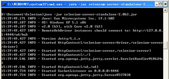它的命令格式:java – jar selenium-server-standalone-X.X.jar。图 6 给出了 Selenium server 启动成功后的信息。
