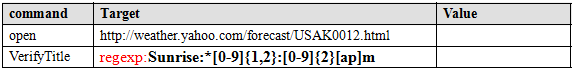 在selenese中regular expressions范本必须加上“regexp: ”或者“regexpi:”;前一种方式对大小写敏感,后一种方式对大小写不敏感。