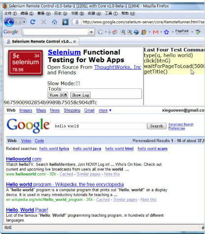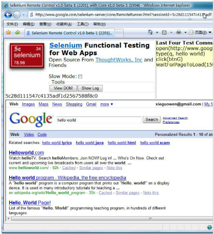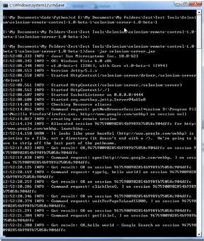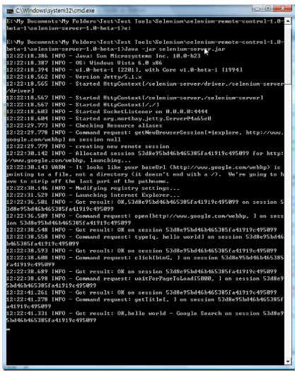 同时命令行窗口显示SeleniumServer进行的每个步骤操作