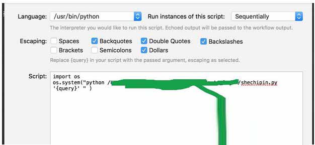 shechipin(sys.argv[1]) #传入的参数即为alfred代码里的'{query}'