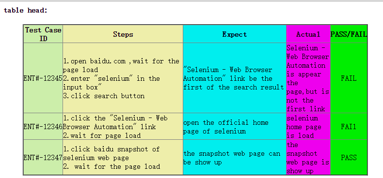 <td height="26" align="left" bgcolor="#EEEEAA" >1.open baidu.com ,wait for the page load</br>2.enter "selenium" in the input box" </br>3.click search button </td>