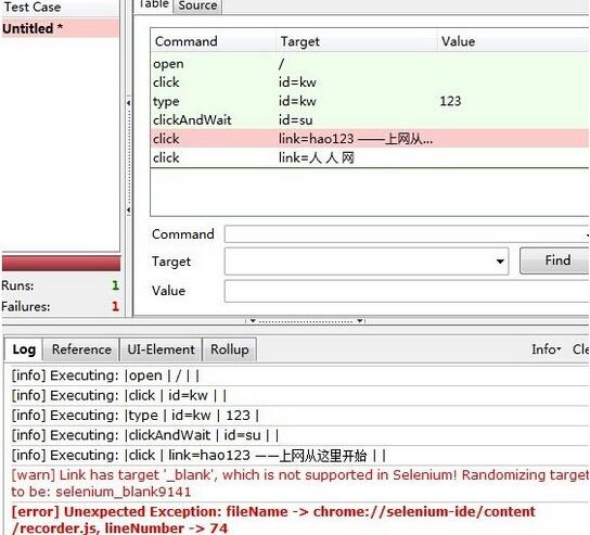 selenium1是不支持多窗口切换的 因此会卡在这里,也录制不支持这个操作,但是很多书都没有写出这个缺陷,都说又这个功能,真是很坑啊,我当时找到这个