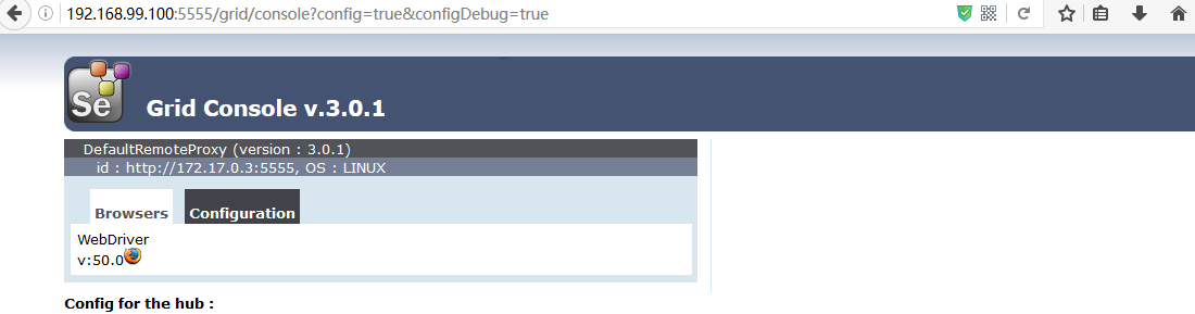 做完这一切我们在浏览器中输入http://192.168.99.100:5555/grid/console,有如下信息: