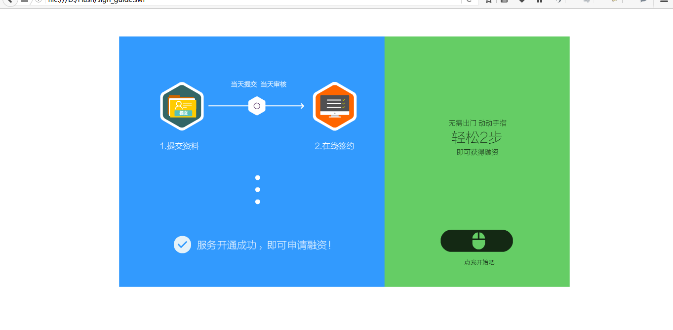 从某种意义上来说,我有点对这个工具产生依赖。当我在自动化过程中绝望的时候,我会第一时间想到它,而它也往往能带给我惊喜,像上篇用fiddler录制接口一样(其实还有很多..)!来说说我用这个工具来操作flash。我所操作的Flash图片如下: