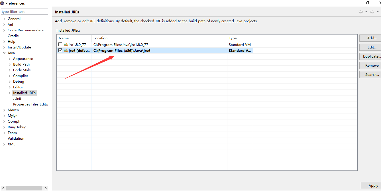 上图大箭头部分是我们新安装的32位jre路径,我们选择改jre并点击Apply。