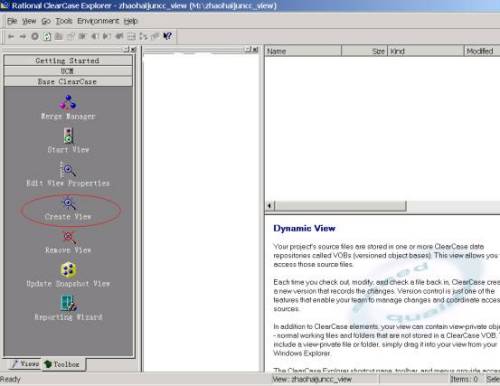 当你安装了 ClearCase 客户端软件后,要做的第一件事是创建 View 。如图 1 所示,我们打开 ClearCase Explorer ,以 Base ClearCase 为例,在工具栏里有一项“ Create View ”: