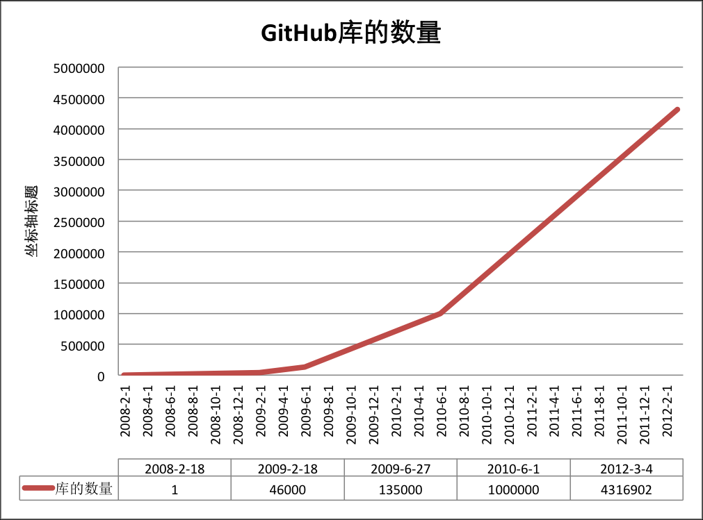 目前看来,GitHub这场冒险已经胜出。根据来自维基百科关于GitHub的描述,我们可以形象地看出GitHub的增长速度: