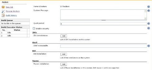 Configure System: 可以对hudson进行系统配置,包括全局路径和变量设置等。如下图