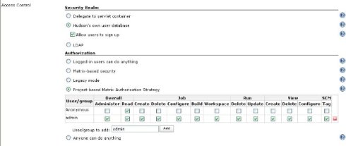 Project-based Matrix Authorization Strategy 这里可以设置项目参与者每个人不同的权限,如Read,Delete,Configure,Create等。