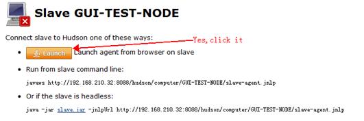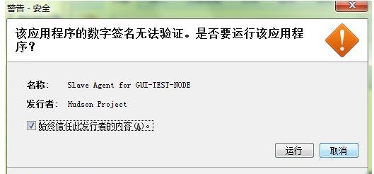 6. 首次建立Master和client的连接:到目前为止我们的Hudson主机与客户端都是没有连接上的,现在我们点击“slave-agent.jnlp”文件,会出现弹出框: