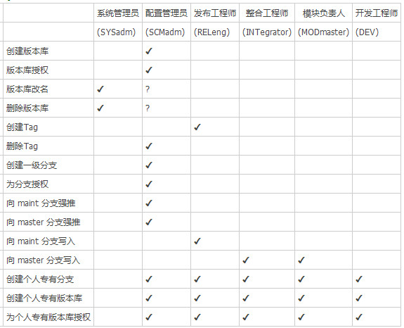● 设置只有发布管理员才有权限推送的版本库或者分支,用于稳定发布版本的维护。