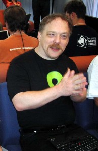 Eric Steven Raymond(ESR)出生于1957年,自由软件的鼓吹者。他成名于黑客文化,成为黑客字典的维护者。 1997年的《大教堂和市集》(《The Cathedral and the Bazaar》)发布,Raymond此成为多年以来开源运动的非正式代表。