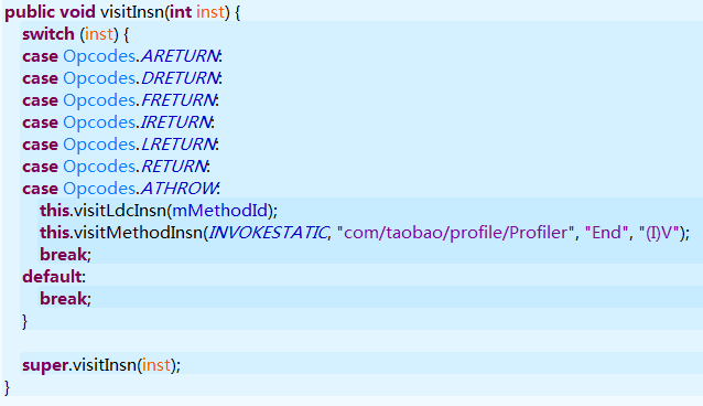 visitInsn指的是执行单条指令时需要执行的勾子。