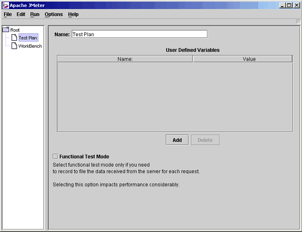 您可以从http://jakarta.apache.org/builds/jakarta-jmeter/release/下载 JMeter 的新发行版。在我撰写这篇文章时,新的 JMeter 版本是 1.8。JMeter 要求在 Sun 的 JDK1.4(或者更高)环境中工作。IBM JDK(指当前版本)似乎与 JMeter 不兼容。JMeter 已经在各种 UNIX® 变体 (包括 Solaris 和 Linux) 和 Windows®(98®、NT® 和 2000®)上通过了测试。