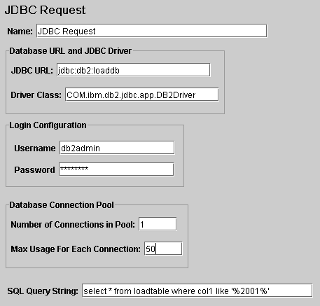 接下来,我们使用 图 5 所示的值进行测试。对于那些不太熟悉连接池的读者来说,连接池是一组数据库连接的维护,以便应用程序重复使用。数据库连接池在 Web 环境中很常见,因为 Web 用户连接、断开连接非常频繁。在数据库世界中,获得数据库连接是一项昂贵的操作。我们必须建立连接、维持连接,然后在操作完成的时候断开连接。利用 JMeter,我们可以分析连接池的优势。