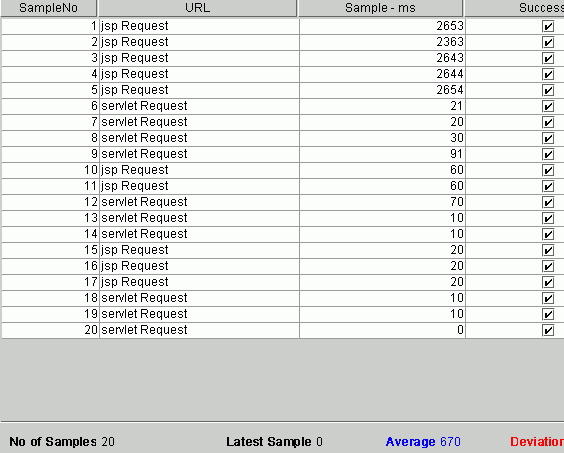 2. 你可以设置界面上面的filename属性设置将测试结果保存到某个文件中界面下面将使用表格显示测试结果,表格的第一列sampleno显示请求执行的顺序和编号,url显示请求发送的目标,sample-ms列显示这个请求完成耗费的时间,后的suclearcase/" target="_blank" >ccess列显示改请求是否成功执行。界面的下面你还可以看到一些统计信息,关心的应该是Average吧,也是相应的平均时间。