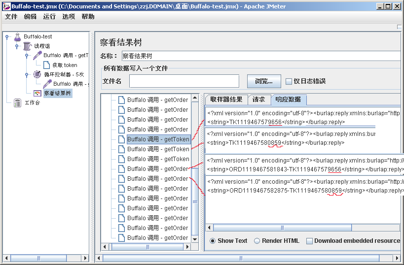 文件 att:在 JMeter 压力测试工具中使用变量.buffalo-jmeter.zip 中还包括了上述的 JMeter 测试计划(Buffalo-test.jmx).