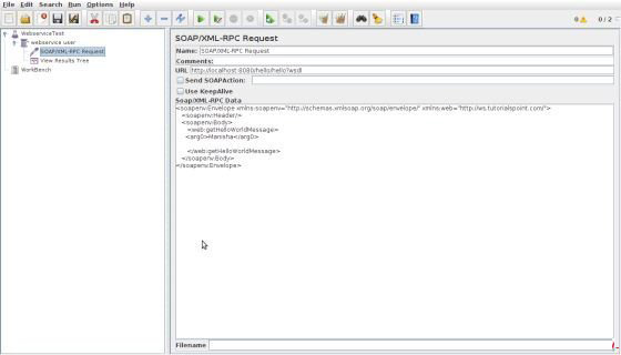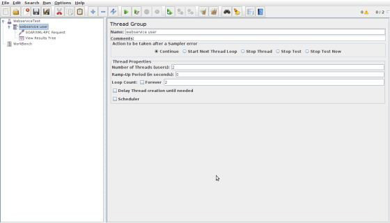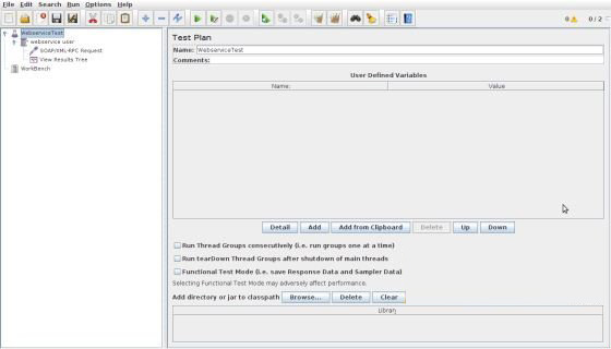 通过点击启动JMeter的窗口 /home/manisha/apache-jmeter-2.9/bin/jmeter.sh. 点击测试计划节点上。重命名此测试计划节点 WebserviceTest.