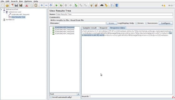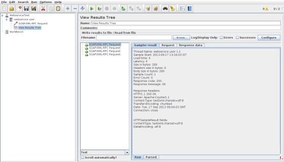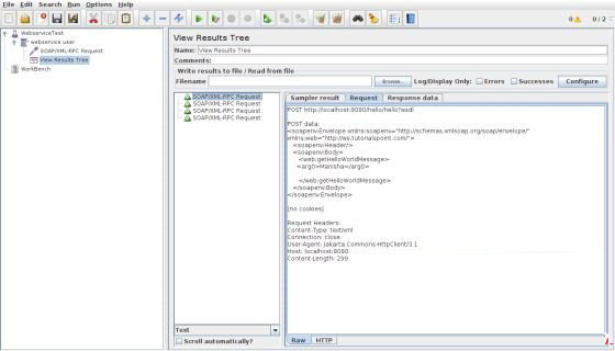 选择 webservice 用户元素,并添加一个查看结果树监听器(Add > Listener > View Results Tree).