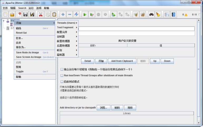 下面看一下一个计划下面都有哪些主要的功能模块(右键单击“测试计划”弹出菜单)。
