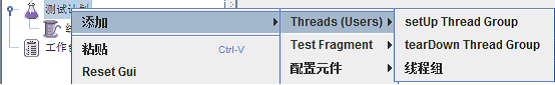 虽然有三个添加线程组的选项,名字不一样, 创建之后,其界面是完全一样的。之前的版本只有一个线程组的名字。现在多一个setUp theread Group 与terDown Thread Group