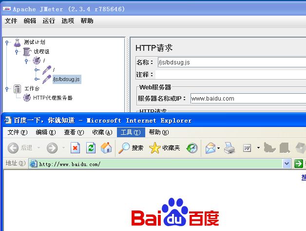 3. 现在点击jmeter上的“启动”按钮,打开浏览器输入需要录制web项目地址,jmeter会自动记录你IE所访问的页面。