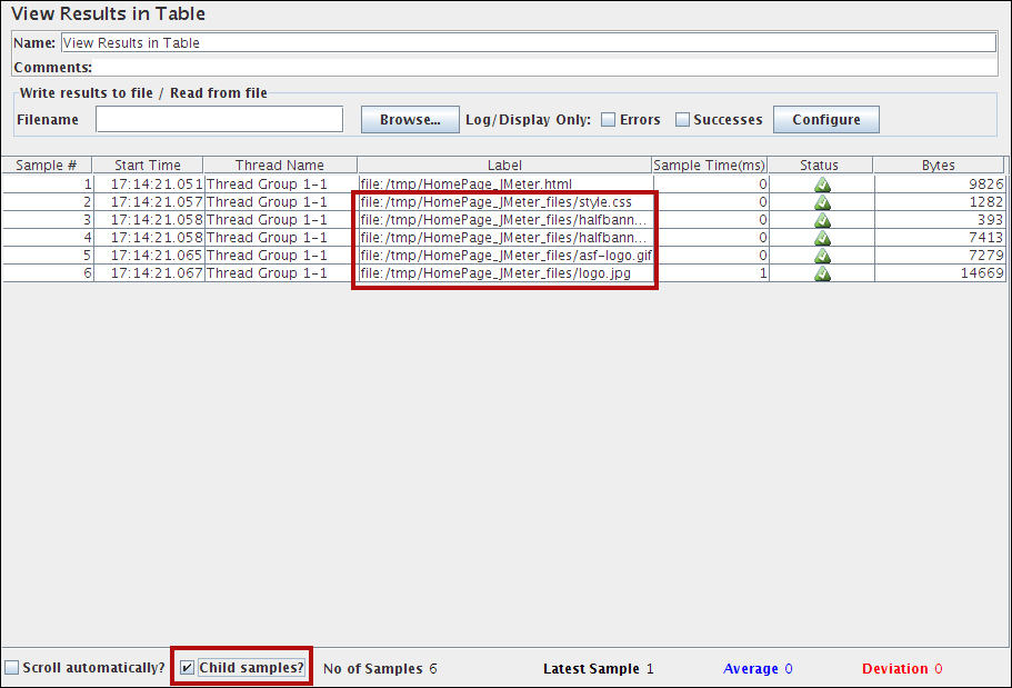 View Results in Table - child sample display
