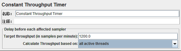 All active threads in current thread group :设置的target Throughput将分配在当前线程组的每一个活跃线程上,当测试计划中只有一个线程组时,该选项和All active threads选项的效果完全相同。