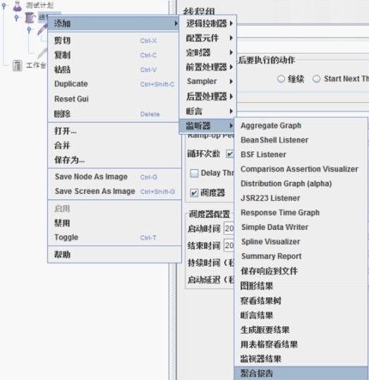 添加聚合报告,右键点击线程组,在弹的菜单(添加--->监听器--->聚合报告)中选择聚合报告。