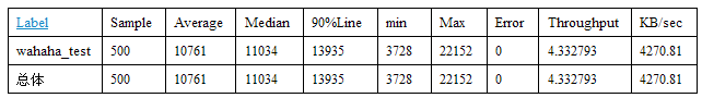 测试结果分析:在每秒钟有100个人同时访问该页面的情况下,每个用户显示页面的平均时间为10秒,小时间为3.7秒,大时间为22秒,出错率为0。根据测试结果显示,每秒钟并发15个没问题,但是流量有点高4.2M/秒。