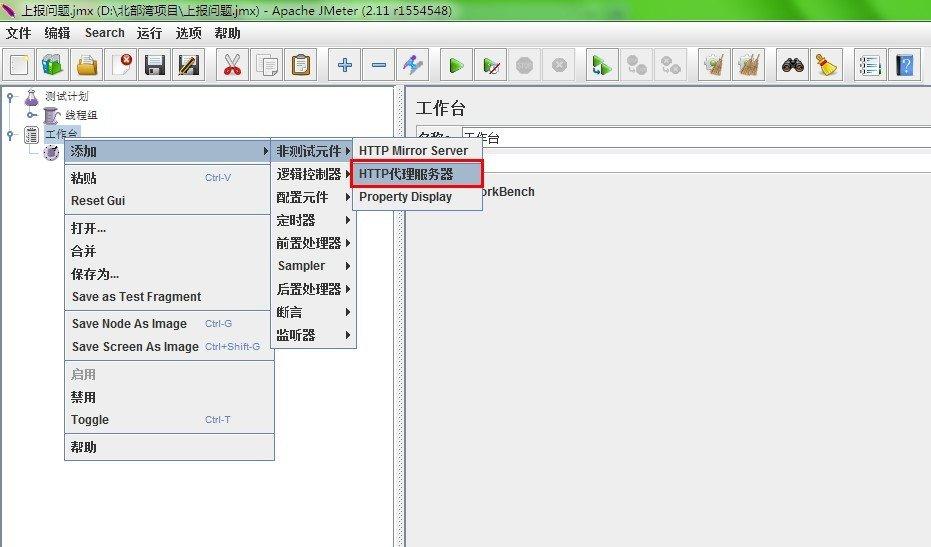工作台-->右键添加非测试元件-->Http 代理服务器