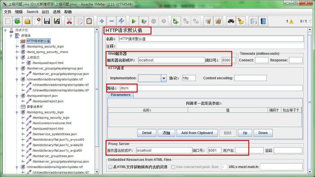 4 在测试计划中添加一个Http默认请求,并设置相应的参数