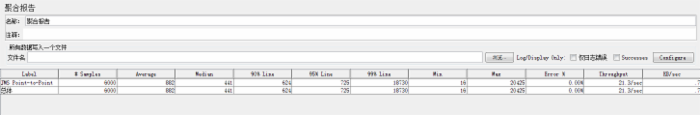 现在,一个JMS PTP的采样器已经配置完成,去设置一个线程开始跑起来吧,下面是一次运行后的结果 聚合报告:
