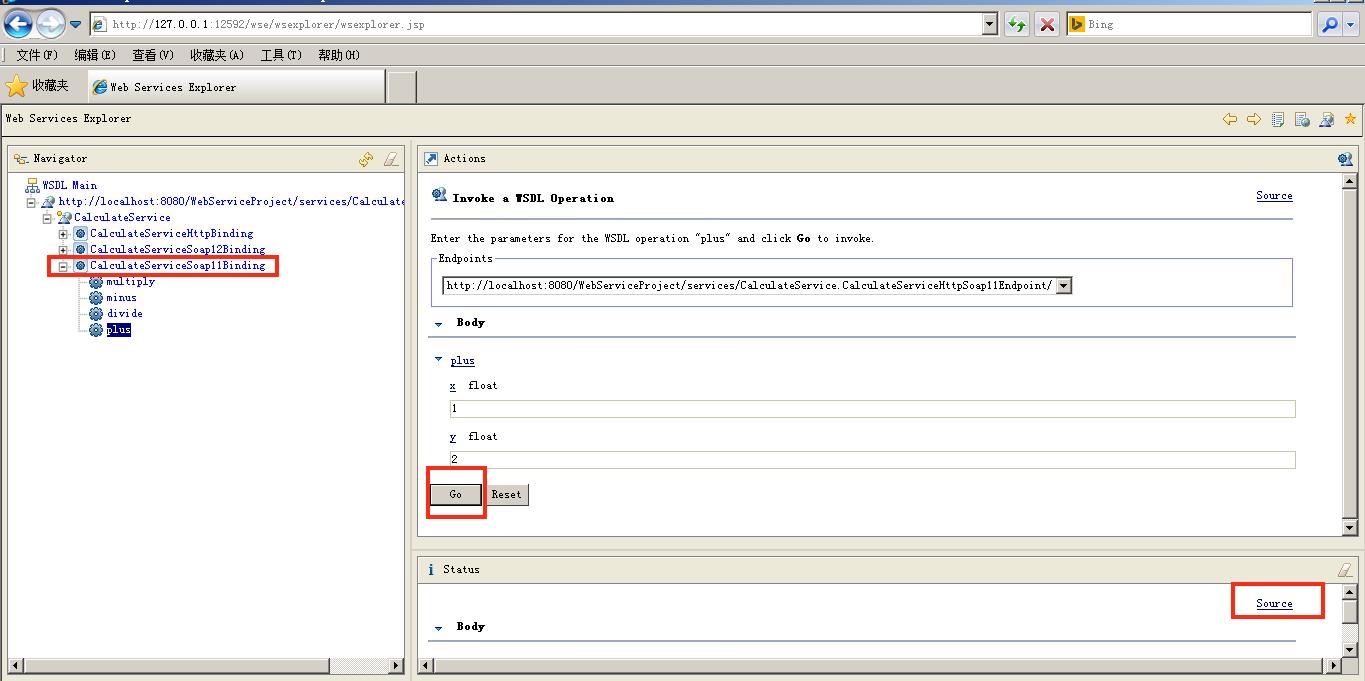 在右下框的status看到结果,点击source,取SOAP Request Envelope(为这个,绕了半天)