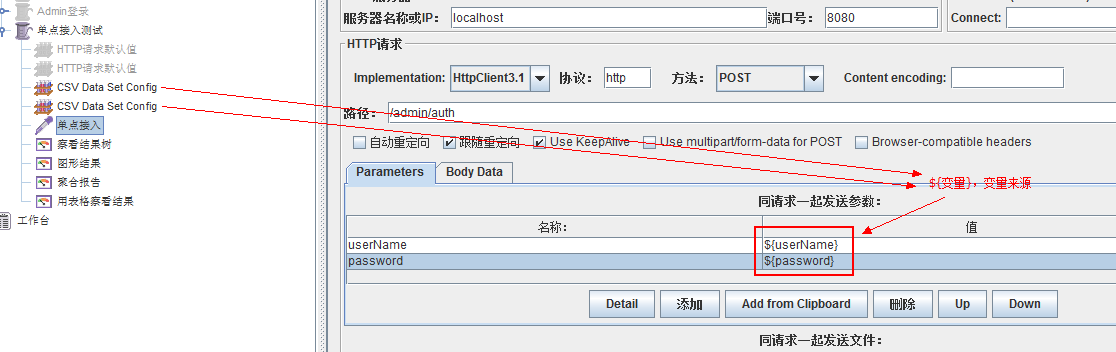 在http请求中使用${变量名} 获得文件中的值