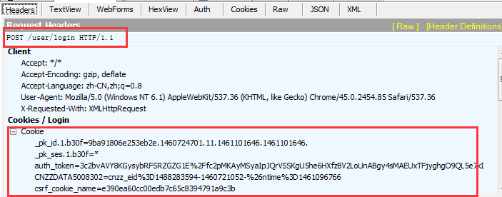 看下图,可以看到是POST发送方式,以及包含N多cookies