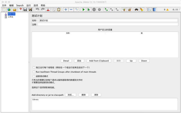 界面开始已经默认添加了一个测试计划,我们下面的步骤 也是要围绕着这个测试计划展开。