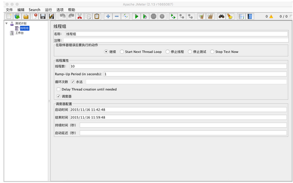在线程组里我们要定义模拟访问的用户量以及访问频率访问时间
