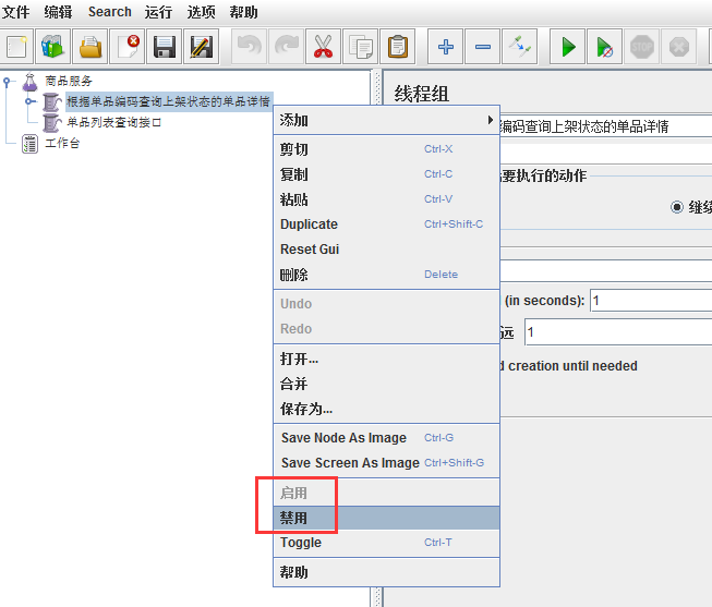 14.如果有多个线程组时,方便更清楚地查看结果,可以选择禁用其它线程组,启用当前线程组。