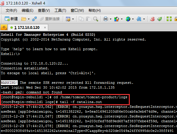 17.jmeter接口测试过程中,可以在172.18.0.120上查看对应日志。对应的命令为: