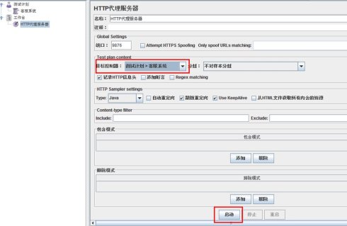 2.设置该【Http代理服务器】(HTTP Proxy Server),【目标控制器(TargetController)】选择刚才建立的线程组(Test Plan>Thread Group1)。