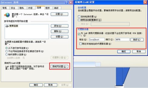 2.在局域网设置(LAN setting)界面勾上【为LAN使用代理服务器(Use a