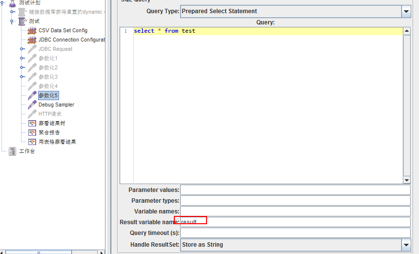 如果给这个参数设置值,它会创建一个对象变量,保存所有返回的结果,获取具体值的方法:columnValue = vars.getObject("resultObject").get(0).get("Column Name")