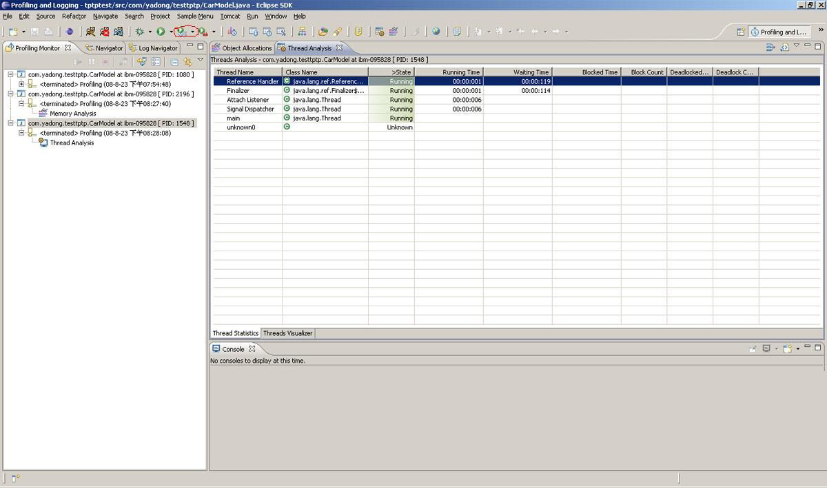 Eclipse Test and Performance Tools Platform(TPTP)用它可以监测运行的并发线程数据、内存的使用情况等,是不款非常不错的性能测试工具,它是eclipse官方的一款插件项目.可以进行程序执行时间的统计分析、内存的监控、对象调用的分析等。