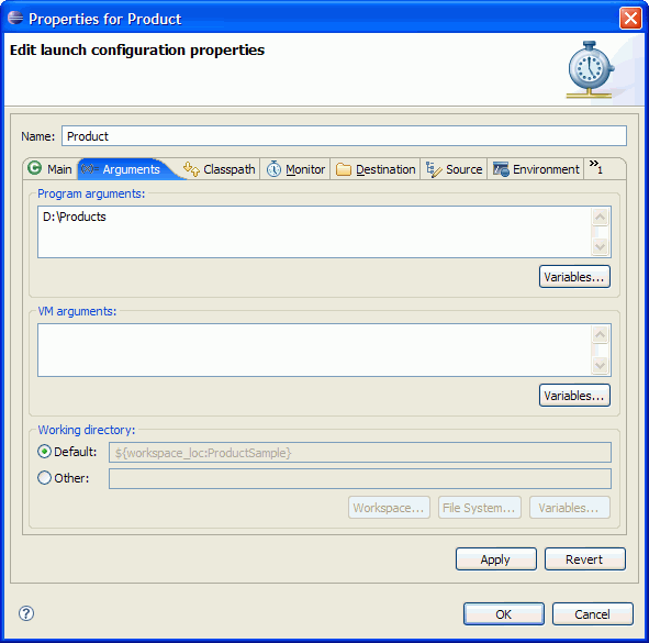 通过Profile As-->Java Application菜单打开如下对 话框,如图二所示。对于这个例子来说,通过程序参数来设置包含产品信息的xml文件的文件夹路径,从图二可以看到,设置程序参数为x:/myPath/products,其中x:/myPath/products文件夹是你从本文中提供的products.zip 下载解压到本地的路径。