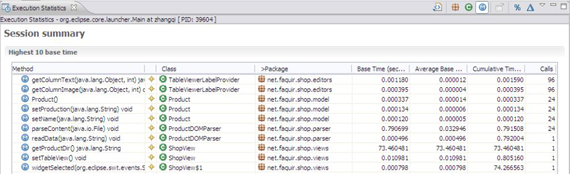 可以使用 Execution Statistics 视图来分析程序中各个方法的运行时间。打开该视图的方式是,数据收集进程上点右键,选择以 Execution Statistics 方式打开。