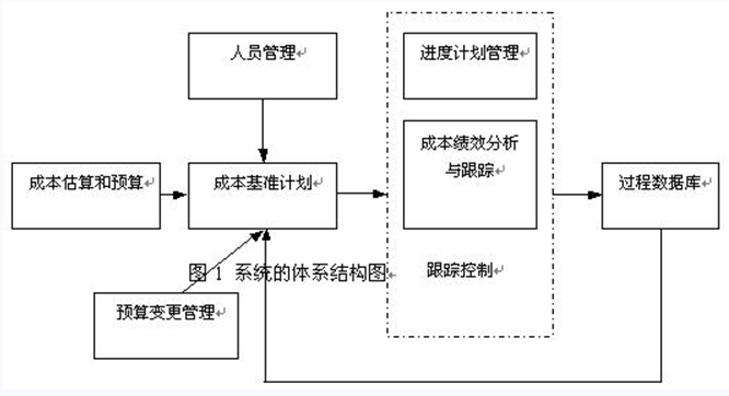 虽然目前已有不少项目管理软件,但一般只是管理软件进度和跟踪监督,和软件估算是项目独立的,而且目前还没有成型的软件项目成本管理软件,我们以 为指南,研究软件开发过程中的特殊性,结合现有的软件成本估算技术和一般行业的项目管理技术,以进度、人员、成本,变更为中心,提出了软件成本管理的具体实施方案。并以此为基础对系统的功能进行分析和设计。图1是系统的基本体系结构图。