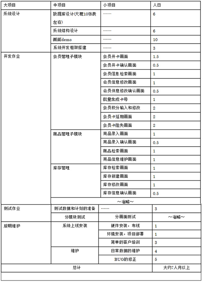 这么多阶段和步骤。但是根据,我所了解到的,国内除了少部分对日的大型公司会严格按照这种流程来做事情之外,绝大多数的国内公司还是随着自己的性子来。其中不乏,东软,联创之类的企业。所以我在制定项目概算的时候,还是按照国内的开发步骤来做: